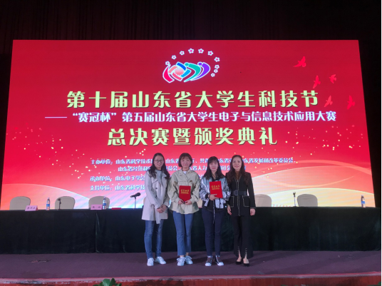 2018年10月27日,由山东省科学技术协会、山东省教育厅、共青团山东省委、山东省发展和改革委员会、山东省经济和信息化委员会、山东省人力资源和社会保障厅主办的第十届山东省大学生科技节“赛冠杯”第五届山东省大学生电子与信息技术应用大赛总决赛在泰安隆重举行。由我院信息管理系孟雯雯、闫静雯老师指导的电子商务创业团队荣获大赛一等奖,团队成员来自16电商4班的王梦雪和刘晨。