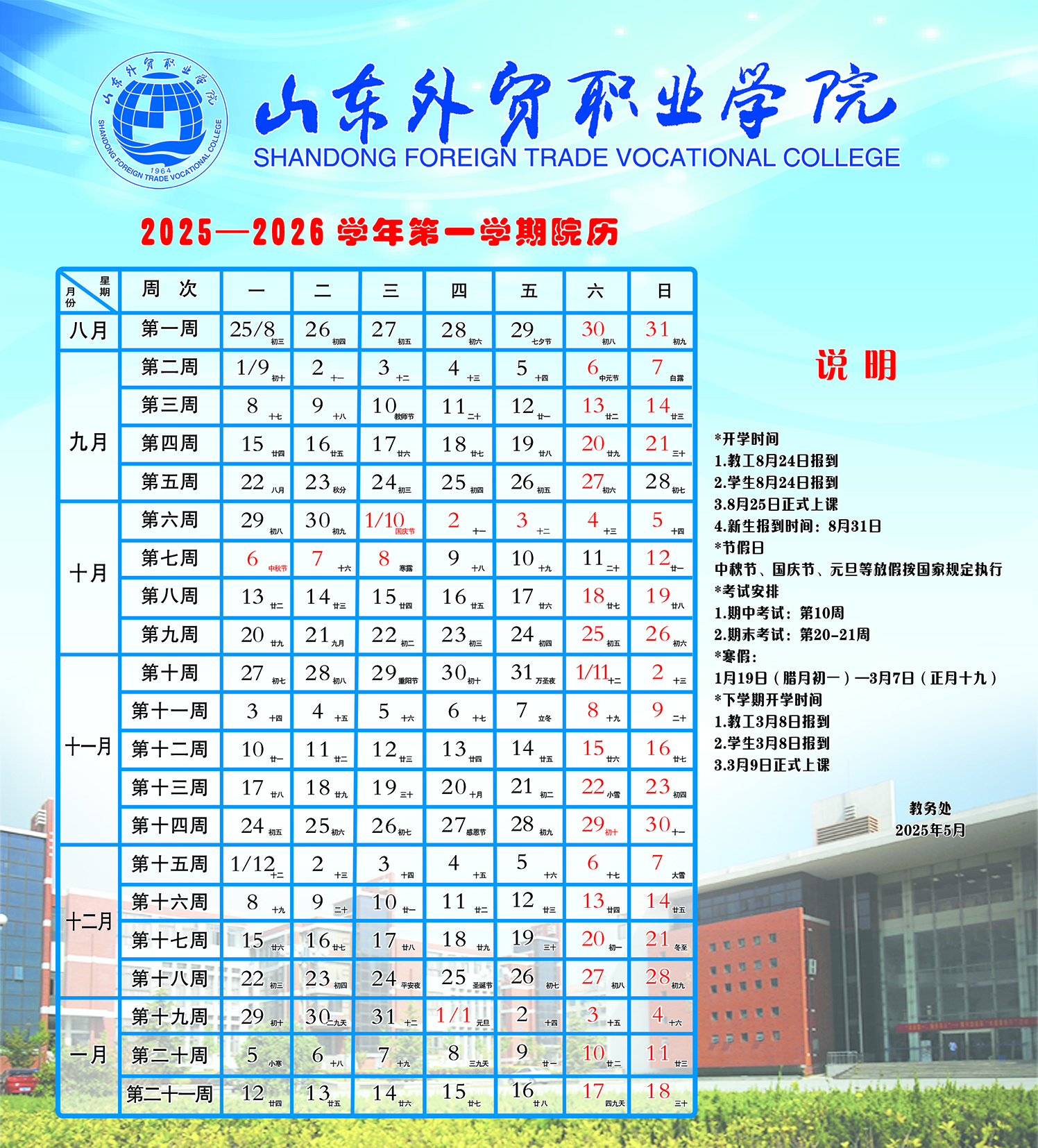 请查收2025-2026学年第一学期院历,自行下载打印。如需纸质版,请于6月27日16点前至行政楼406办公室领取。谢谢!