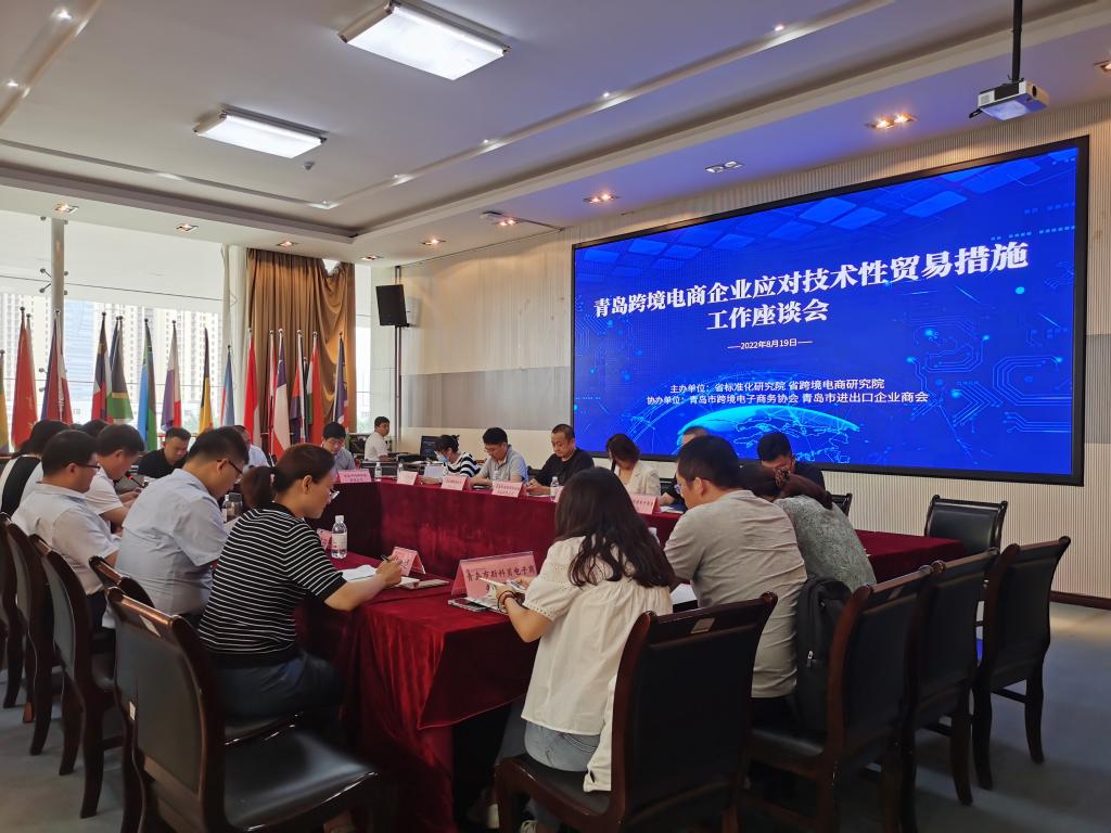 8月19日下午,由省标准化研究院、省跨境电商研究院主办,青岛市跨境电子商务协会、青岛市进出口企业商会协办的青岛跨境电商企业应对技术性贸易措施工作座谈会在我院顺利召开。院长刁建东、省市场监管局对外合作处处长杨全坤一行5人及15家青岛跨境电商企业代表参会,会议由省跨境电商研究院秘书长张鹏刚主持。