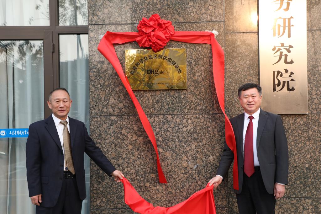 仪式上,刁建东与王中军共同为实训基地揭牌。刁建东表示,学院将利用山东省跨境电商孵化机构的利好政策,与敦煌网在跨境电商领域深入合作,共建师资团队、共建课程,面向全省企业共同开展敦煌网技能培训,加快跨境电商人才培养和企业孵化。王中军表示,敦煌网致力于为企业提供高质量的出海服务,下一步将加强与学院和社会各界的联系,共同努力,推动敦煌网华北地区孵化实训基地开花结果。