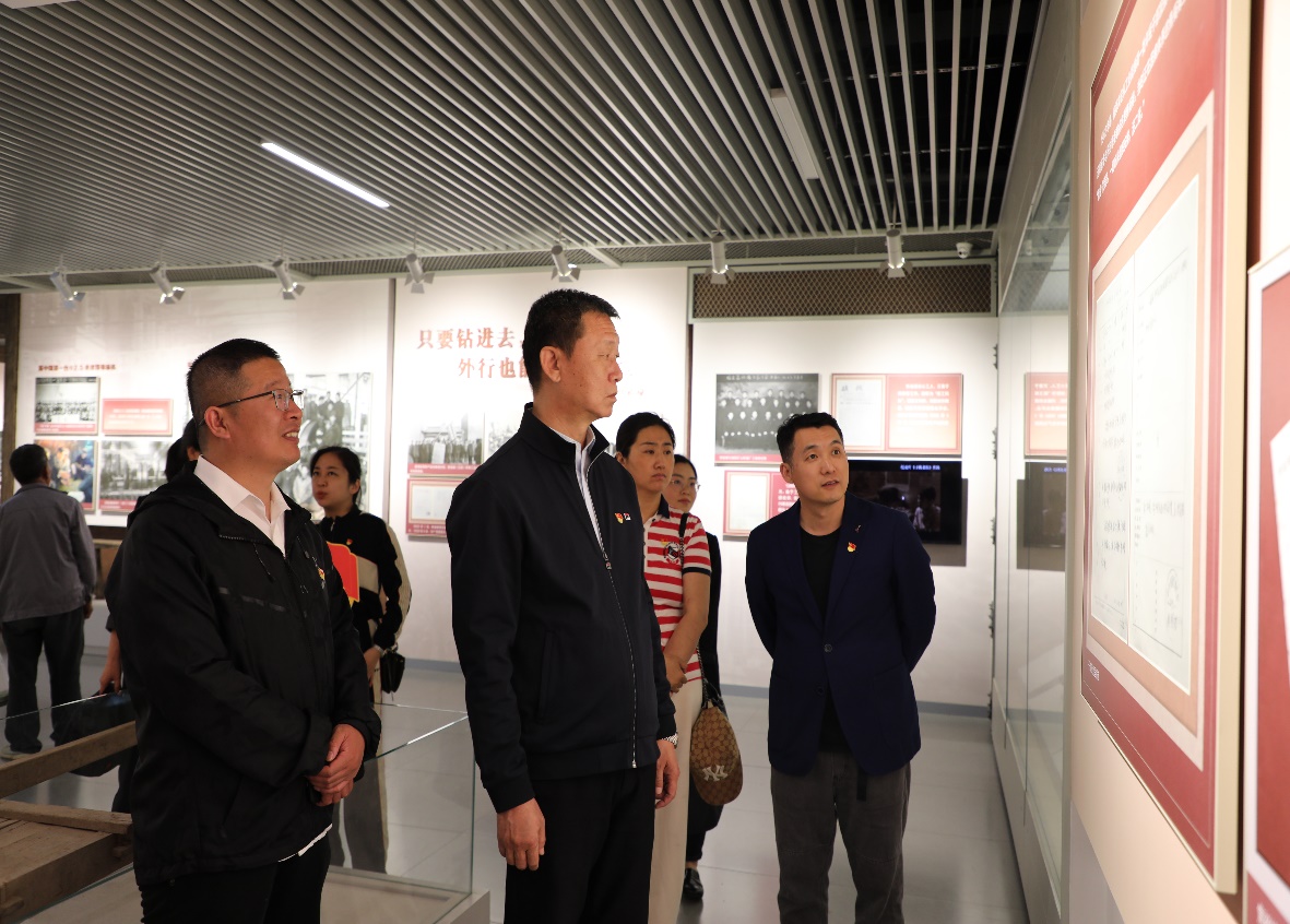 在新时期优秀共产党员事迹展厅中,大家驻足观看,认真听讲,凝神思索,对照优秀的共产党员,找差距,补短板。